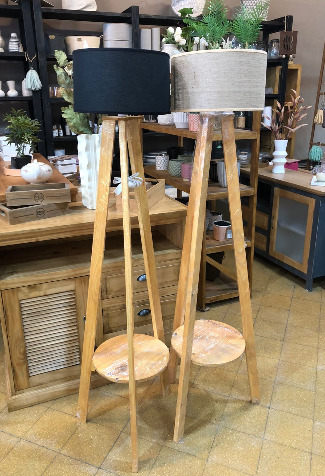 LAMPARA DE PIE DE MADERA cantidad